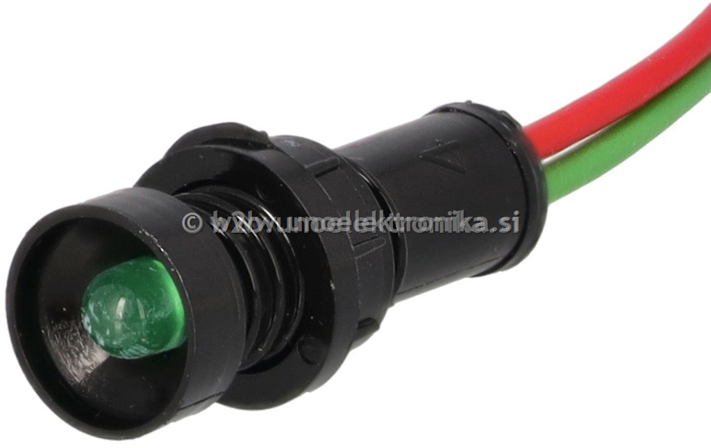 Lučka je zasnovana za panelno vgradnjo fi 10 mm ter ima 30 cm priključni kabel za enostavno integracijo v vezja. Vgrajena LED dioda zagotavlja dolgo življenjsko dobo, dobro vidljivost in zelo nizko porabo energije.
