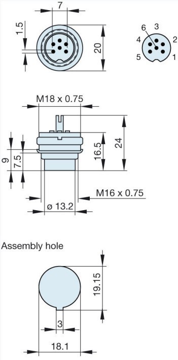Vtikač DIN 6 polov za na panel
