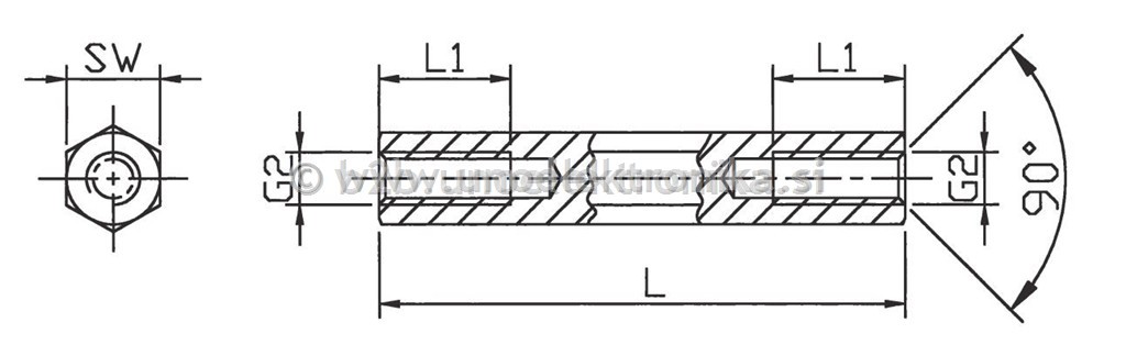 DISTANČNIK L=10mm, NOT. NAVOJ 2xM3/10mm