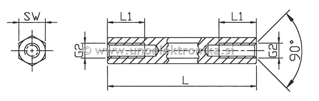 DISTANČNIK L=15mm, NOT. NAVOJ 2xM3/15mm