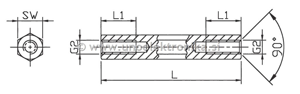 DISTANČNIK L=100mm, NOTRANJI NAVOJ M8