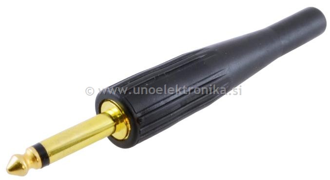 Vtikač jack 6,3mm mono pozlačen vodilo iz gume