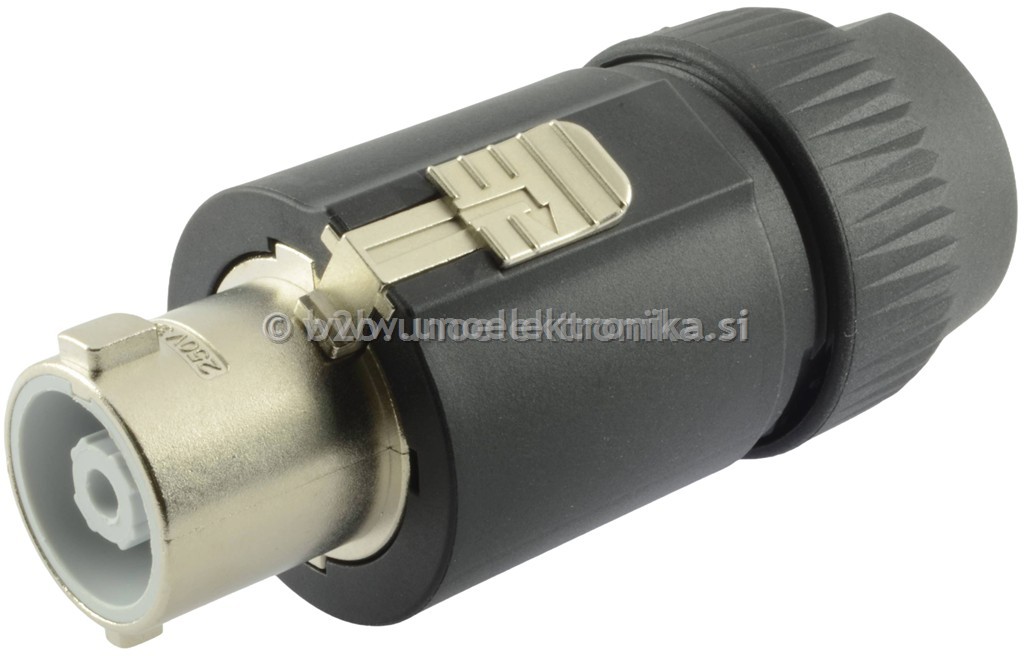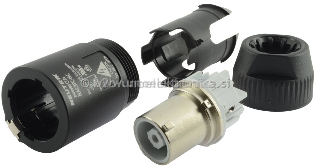 PowerCON je izjemno robusten in zanesljiv zaklepni enofazni AC konektor za visoko tokovno zmogljivost (nazivna zmogljivost 32 A).