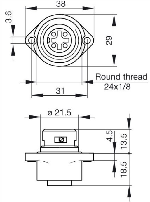 Konektor 4 polni ženski - vtičnica 4 polna fi 24mm za na panel