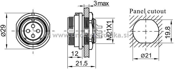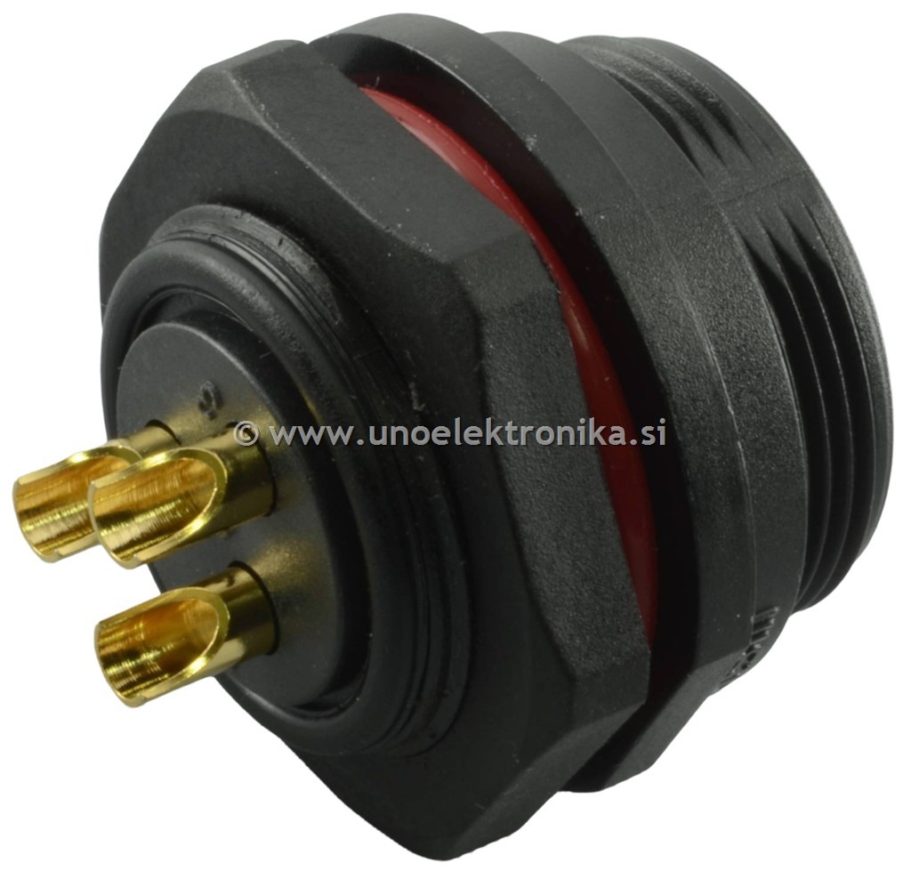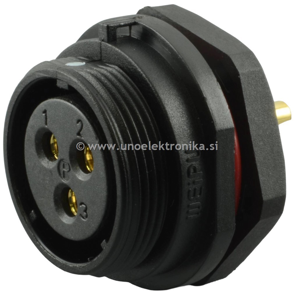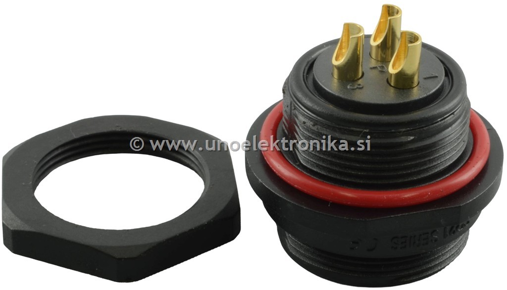 Konektor 3 polni ženski - vtičnica 3 polna fi 21mm za montažo na panel