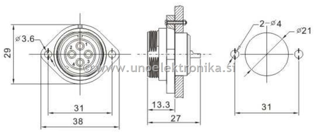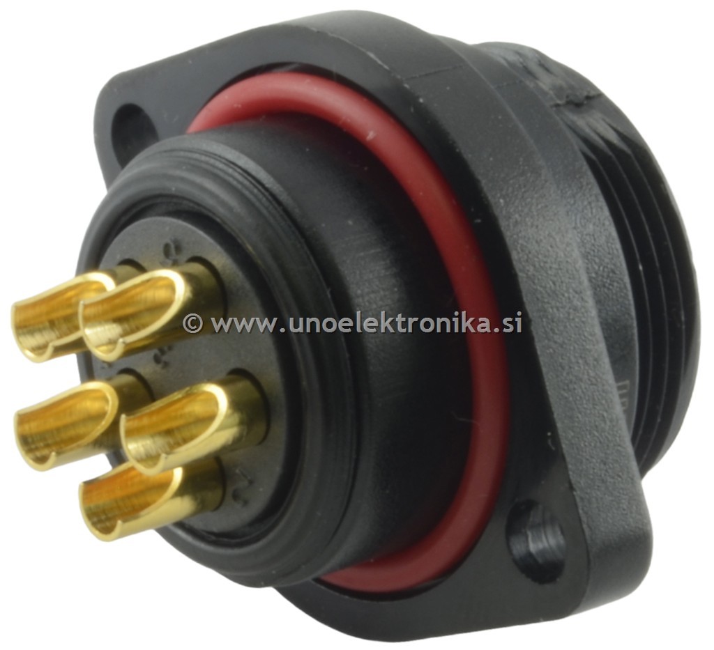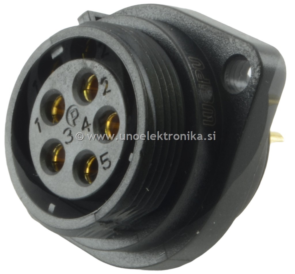 Konektor 5 polni ženski - vtičnica 5 polna fi 21mm za montažo na panel