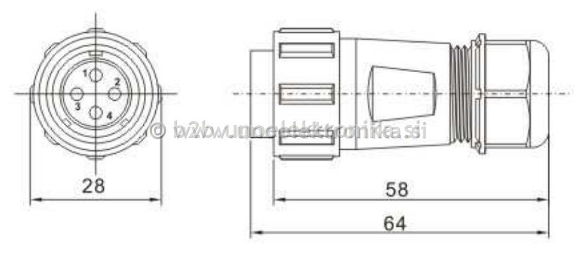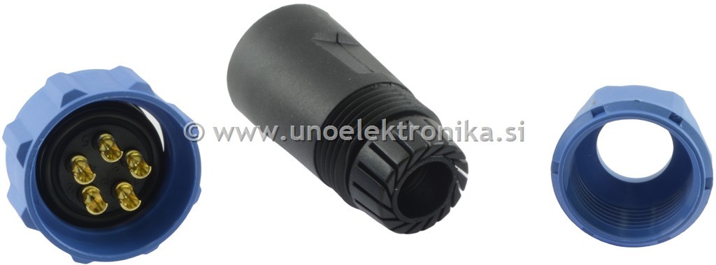 Konektor 5 polni moški - vtikač fi21mm za montažo na kabel