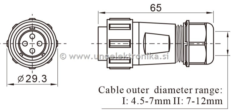Konektor 7 polni ženski - vtičnica 7 polna fi21mm za montažo na kabel