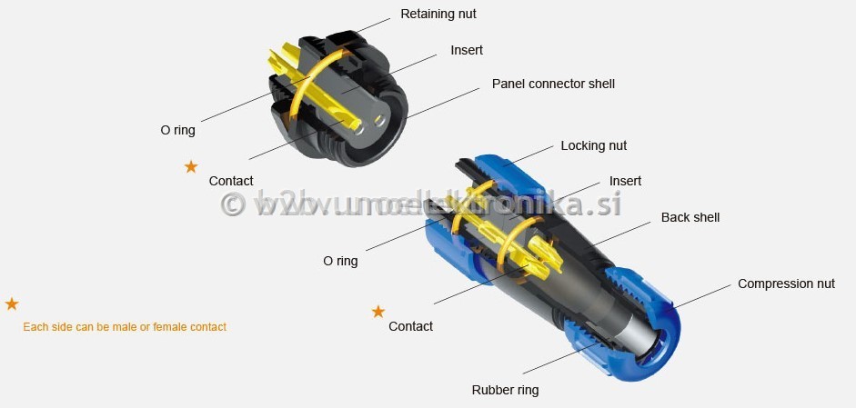 IP68, 15A/250VAC KONTAKTI NA SPAJKANJE