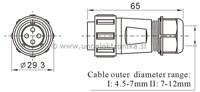 Konektor 7 polni moški - vtikač fi21mm za montažo na kabel