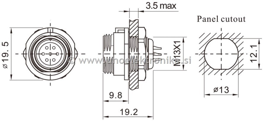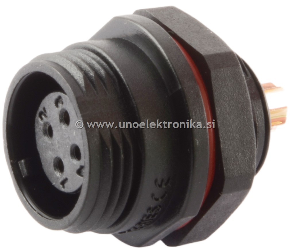 Konektor 4 polni ženski - vtičnica fi13mm za montažo na panel