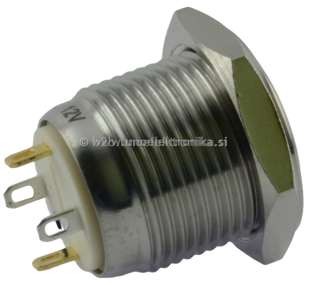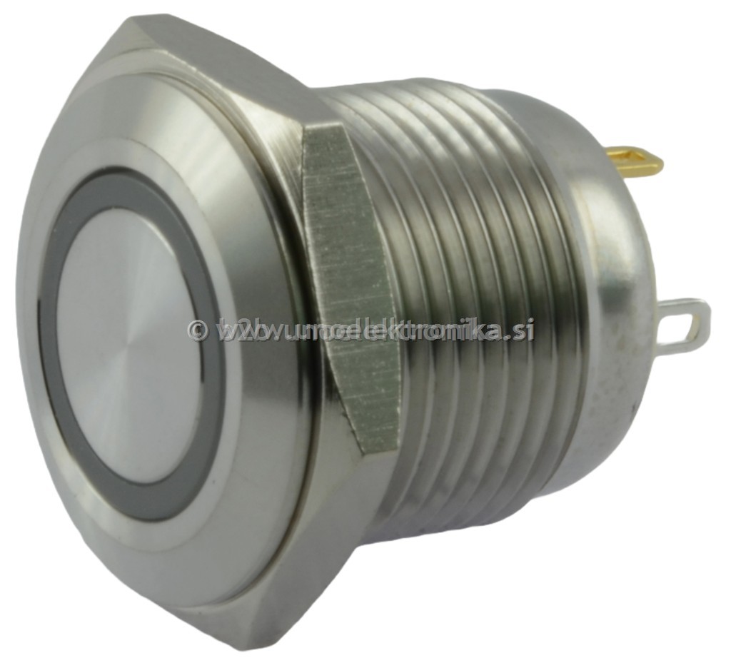 Tipka vodotesa 16mm, IP65, antivandalna, z osvetljenim modrim LED obročem 12V AC/DC