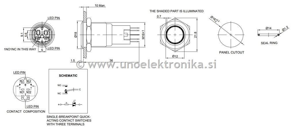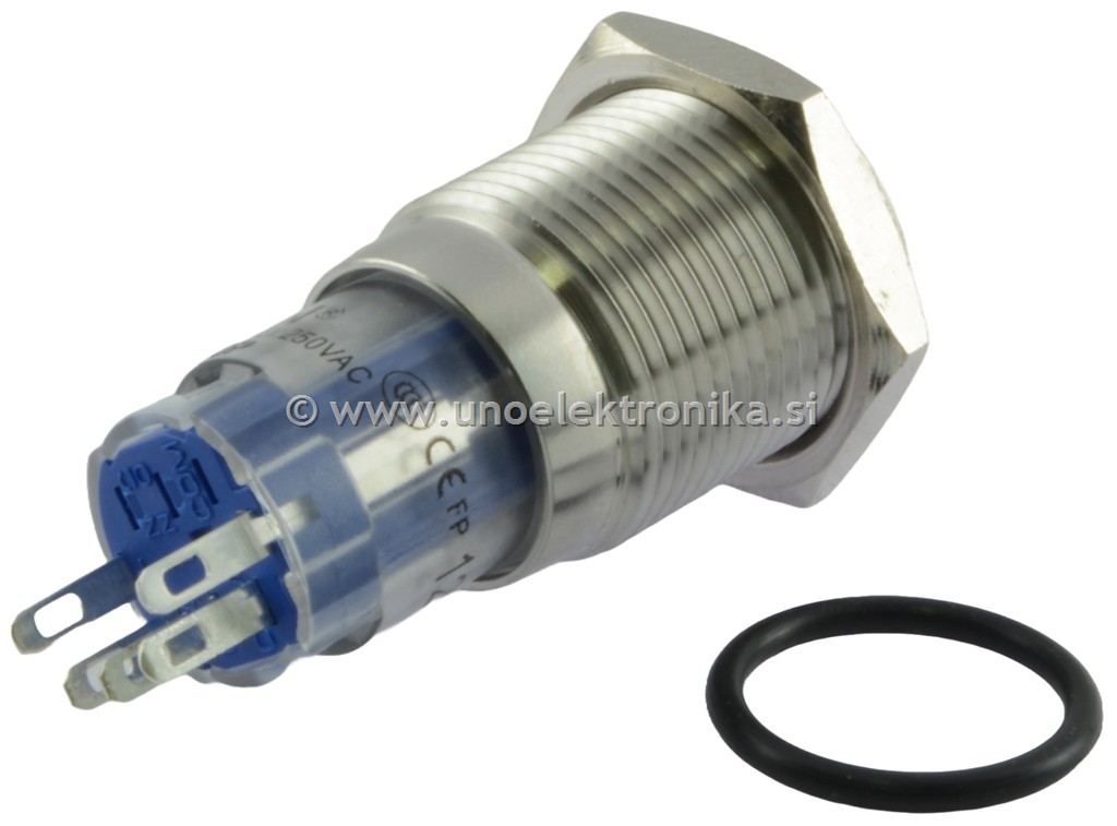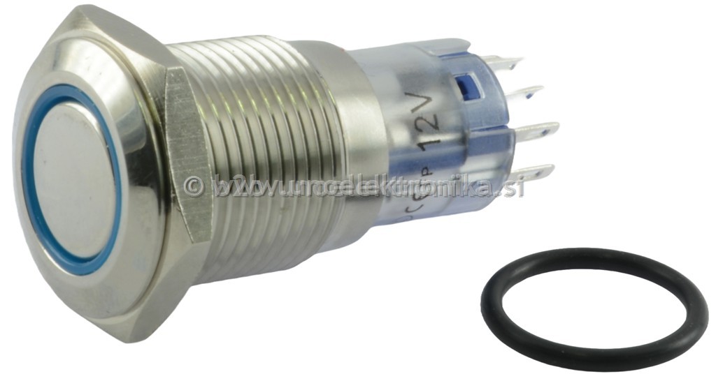 Stikalo vodoteso 16 mm, IP65, antivandalno, z osvetljenim modrim LED obročem 12 VDC
