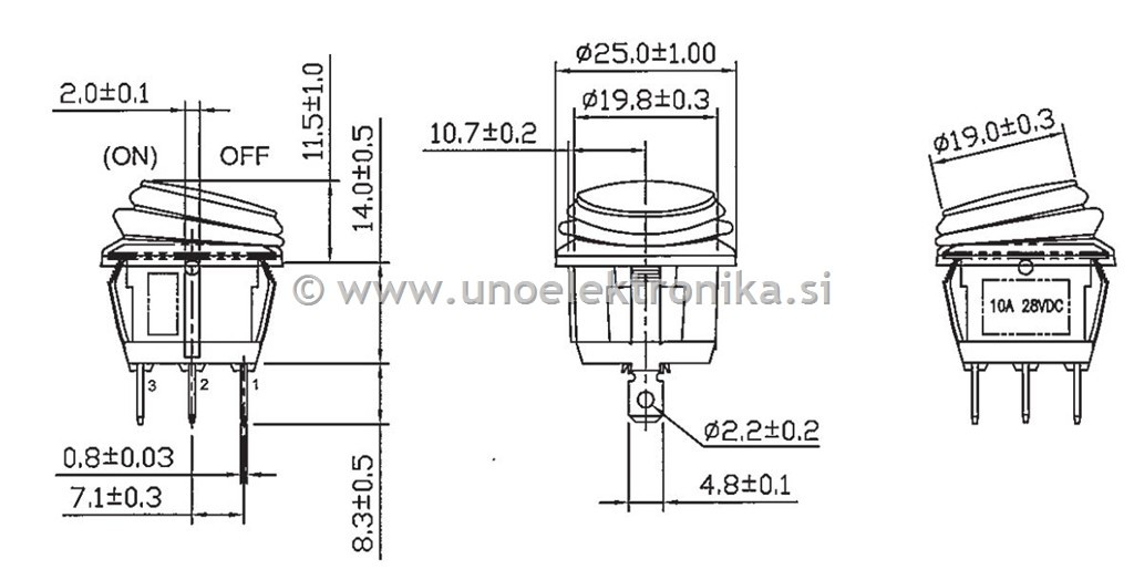 VODOTESNA IP65, fI 20mm, 10A/28VDC NO