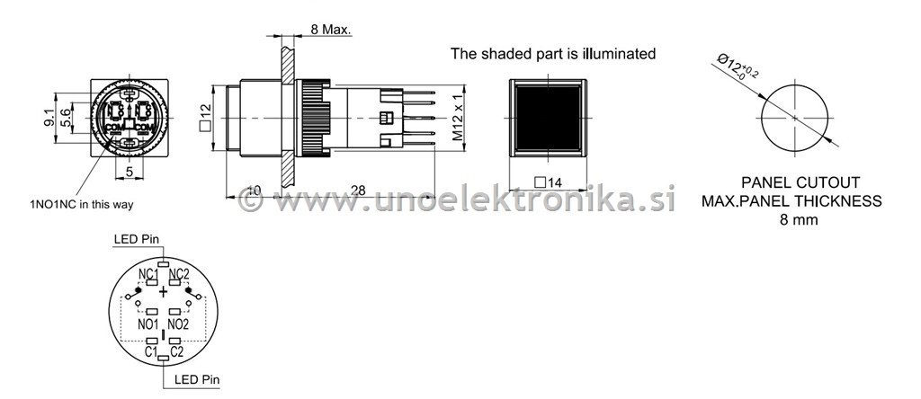 PREKLOPNIK 14x14mm ZELEN LED 24VAC/DC
