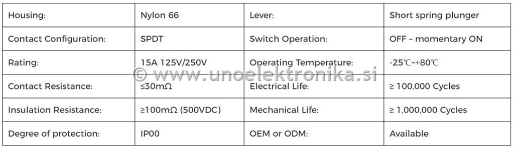 PREKLOPNIK BREZ VZVODA 15A 250VAC