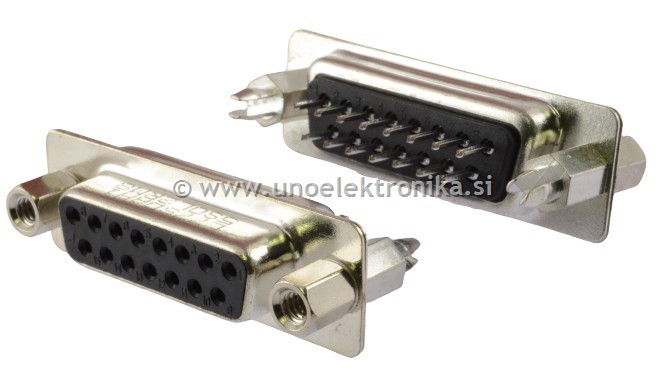 Vtičnica D-SUB 15 polna z vgrajenimi maticami