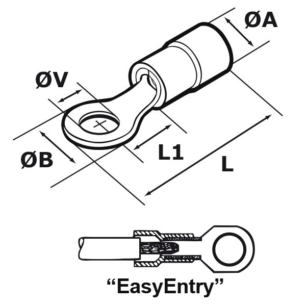 Kabelski vhod je tipa "EasyEntry" (lijakasta oblika), kar olajša vstavljanje in odpravi tveganje upogibanja žice.