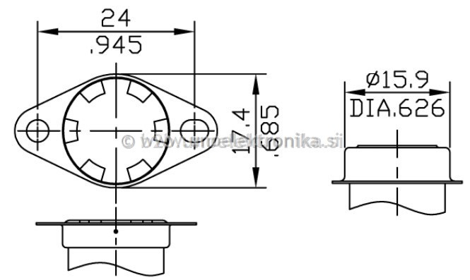 zapiralna temperatura: pri 60°C se kontakti ponovno sklenejo