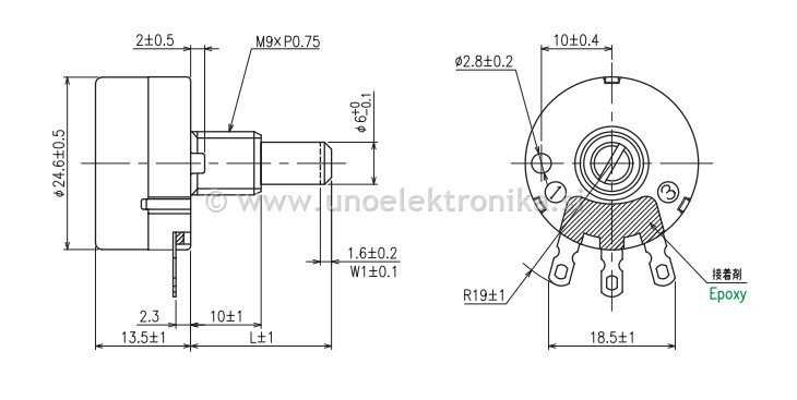Enostopenjski aksialni potenciometer