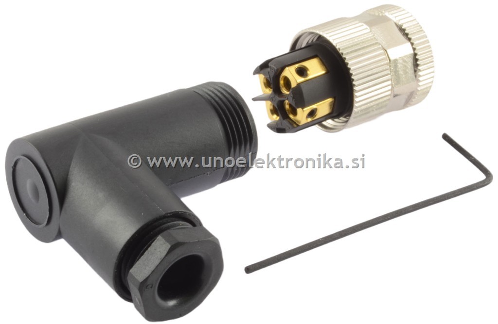 Vtičnica M8 4 polna z zunanjim navojem, kotna
