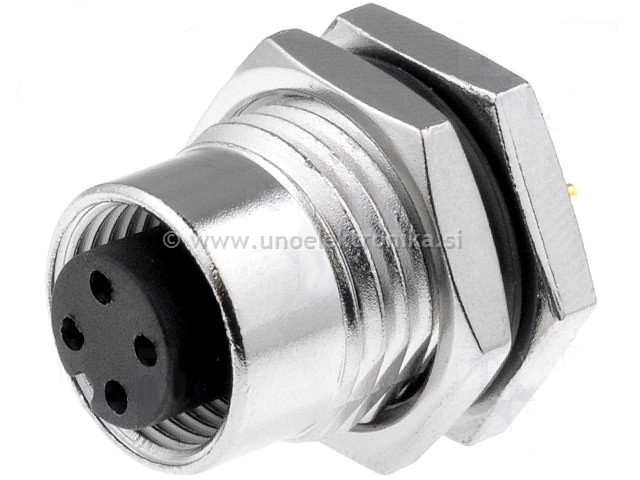 Vtičnica M12 4 polna z matico za pritrditev na panel