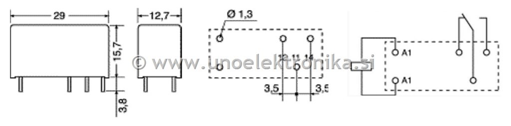 RELE 1 POLNI 12VDC 12A/250VAC #3,5mm