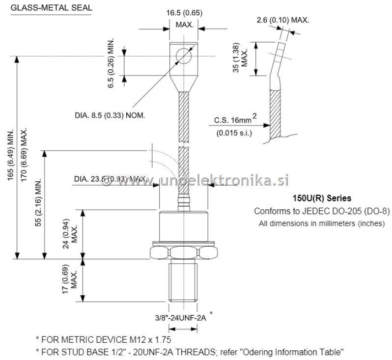DIODA MOČNOSTNA 150A 800V ANODA NA OHIŠ