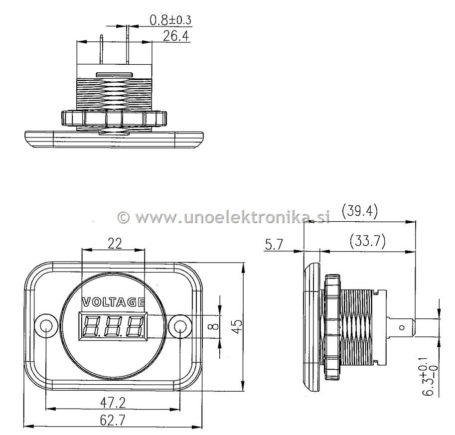 VOLTMETER LED ZA NA PANEL 6-33VDC ZELEN