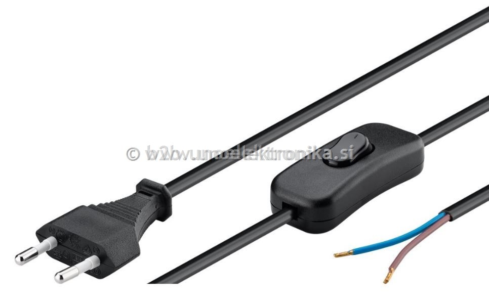 Napajalni kabel 2 polni vtikač - prosti konci z vmesnim stikalom
