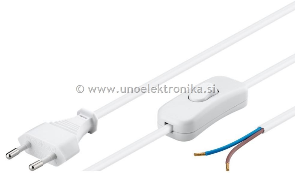Napajalni kabel 2 polni vtikač - prosti konci z vmesnim stikalom