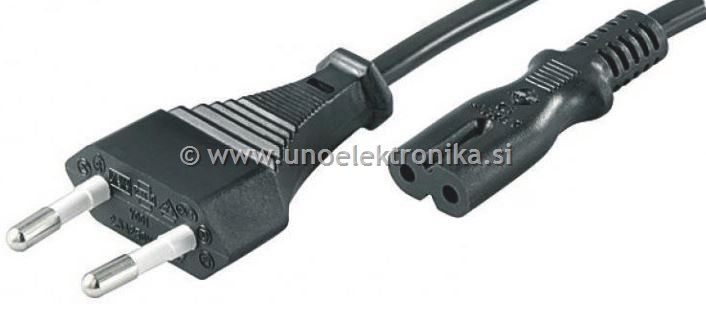 napajalni kabel za radioaparate 2-polni vtikač na vtičnico C7 z utori ( razmak med pini 8mm )