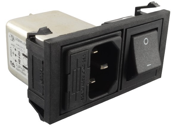 Vtikač EURO C14 za na panel z EMI filtrom in dvojnim nosilcem varovalk