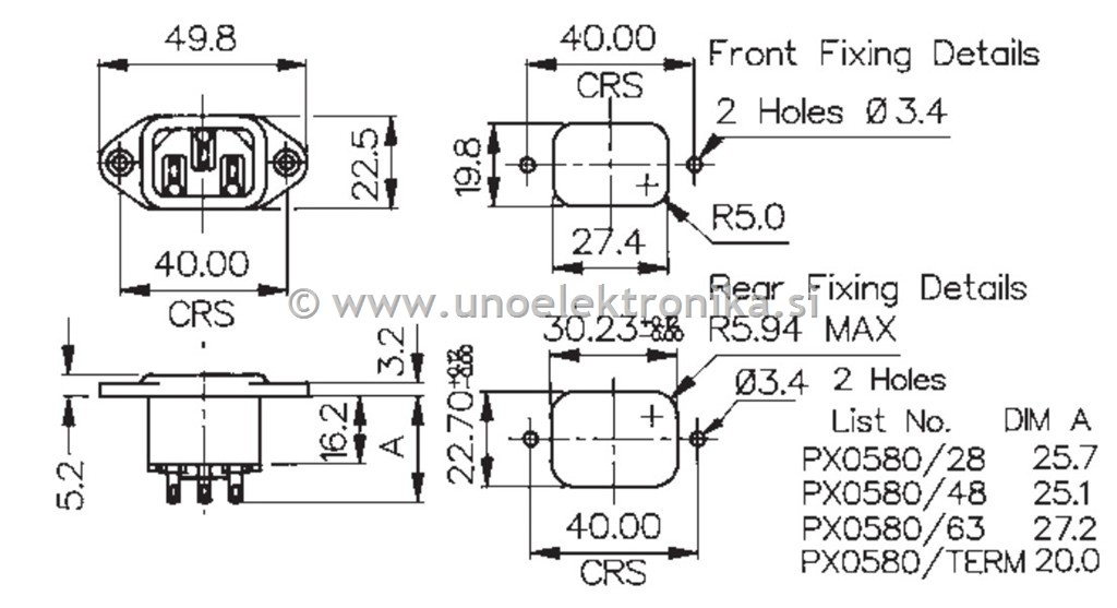 VTIKAČ 3 POLNI EURO ZA PANEL 10A 250V