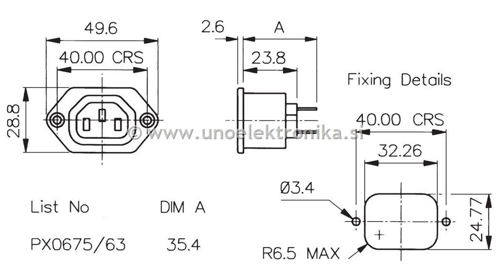 VTIČNICA 3 POLNA EURO ZA PANEL 10A 250V