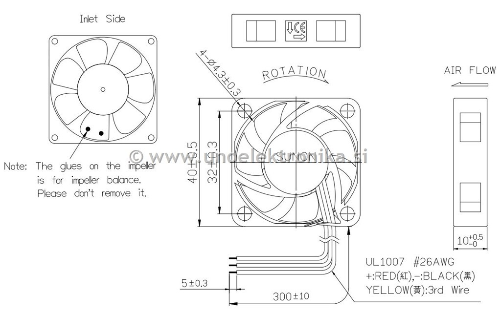 zunanje dimenzije ventilatorja: 40x40x10mm