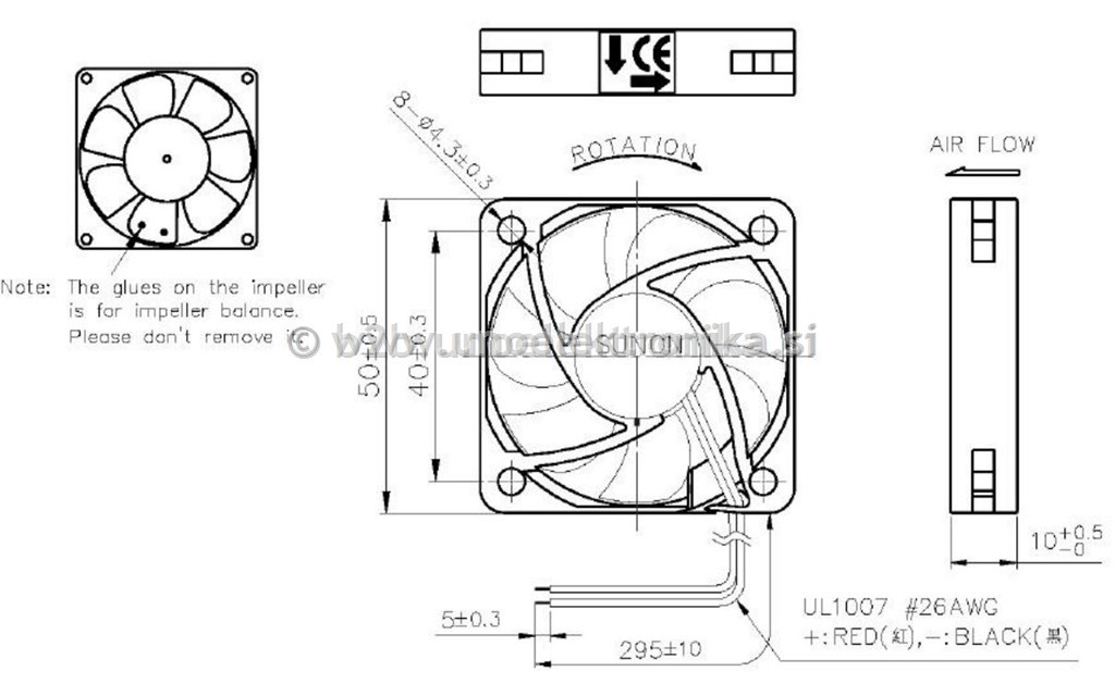 zunanje dimenzije ventilatorja: 50x50x10mm