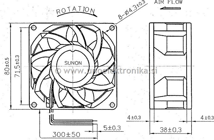 zunanje dimenzije ventilatorja: 80x80x38mm