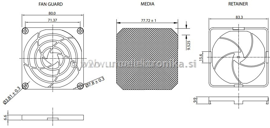 Zaščitna mrežica s filtrom za ventilator dimenzije 80x80mm