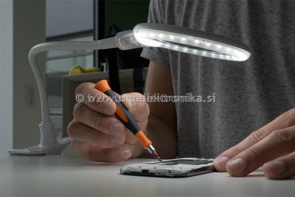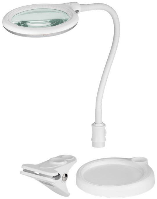 Namizna svetilka z lupo - povečevalnim steklom z bazo in sčipalko / kleščami za pritditev na rob mize