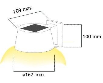 Zunanja LED stenska svetilka s sončnim polnjenjem je izdelana z monokristalnim fotovoltaičnim panelom, integriranim v glavi, kar omogoča najboljšo učinkovitost polnjenja tudi v oblačnih dneh, ter z integriranim PIR senzorjem gibanja. Baterija Li-ion 18650 3,7V/2000mAh nove generacije z visoko zmogljivostjo in visoko učinkovitimi LED zagotavljajo visoko svetlobno zmogljivost in zanesljivost skozi čas.