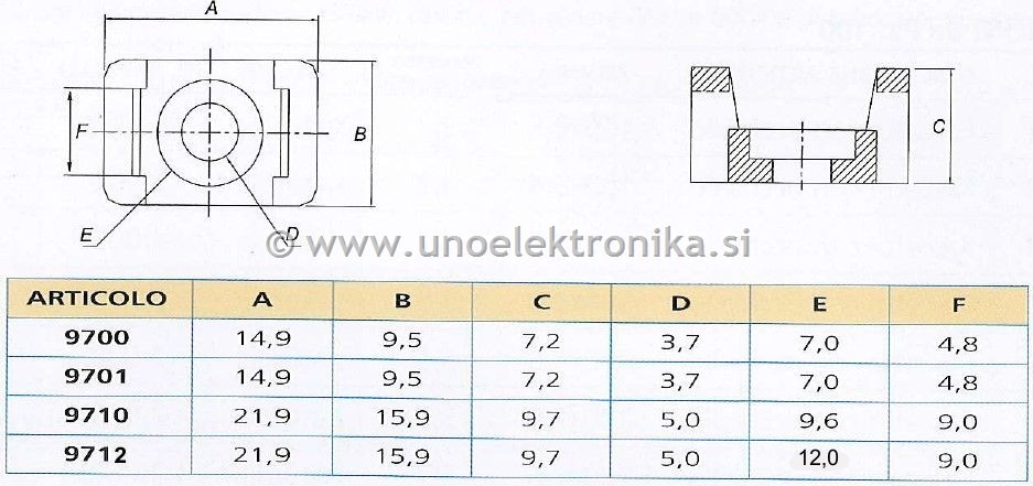 PLOŠČICA 22x16mm ZA FIKSIRANJE VEZIC