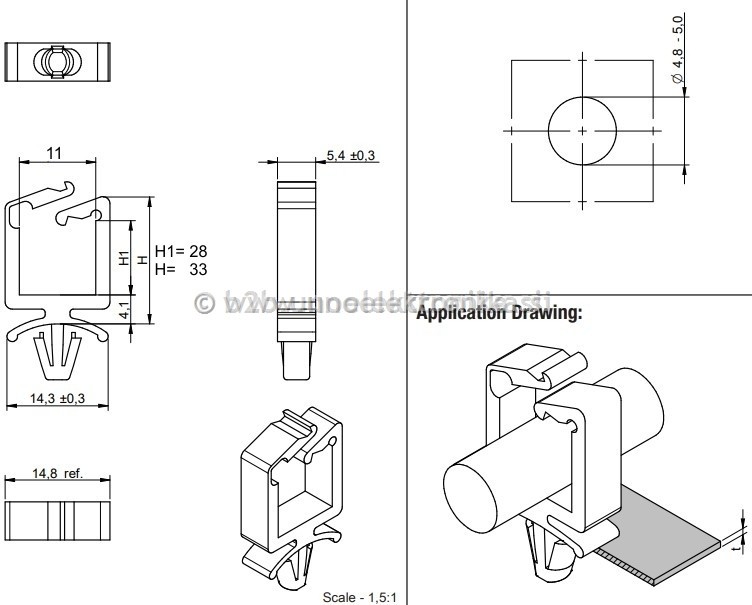 premer montažne luknje v panelu: fi 4,8 do 5mm