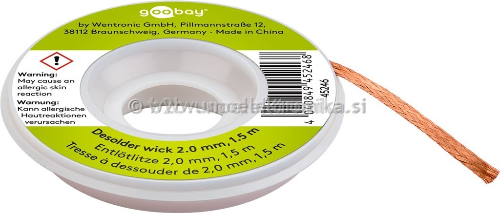 Odspajkalna pletenica iz čistega bakra prepojena s talilom.