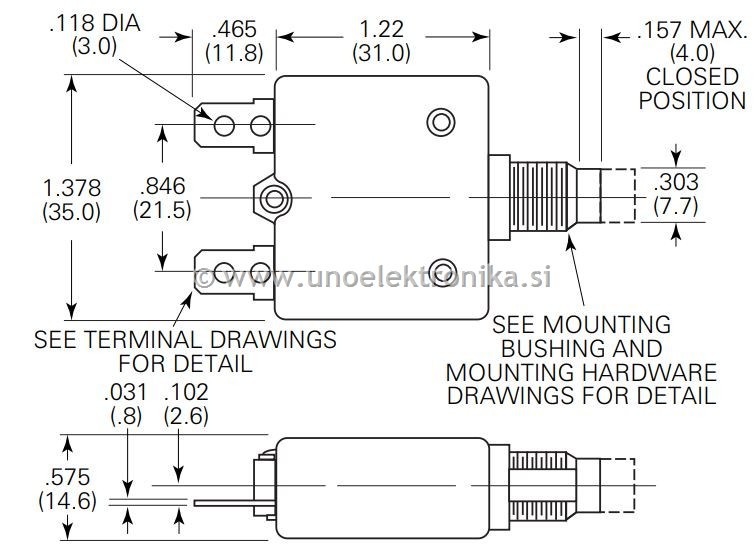 Varovalka termična, avtomatsko prekinjanje, za na panel