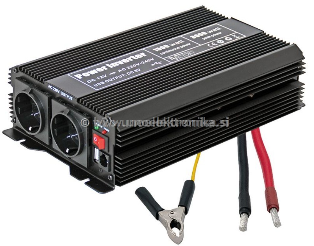 Pretvornik-razsmernik iz 12VDC na 230VAC 50Hz, moči 1500W.