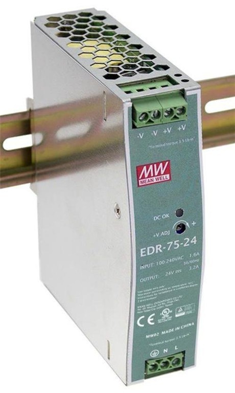 Industrijski switching napajalnik za na DIN letev, EDR-75-24. Izhodna napetost 24VDC