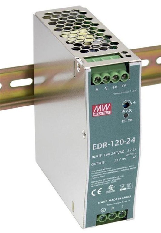 Industrijski switching napajalnik za na DIN letev, EDR-120-12. Izhodna napetost 12 VDC