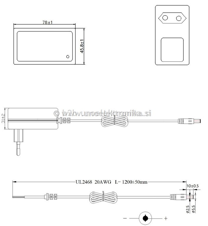 - dolžina napajalnega kabla: 1,2 m (DC)