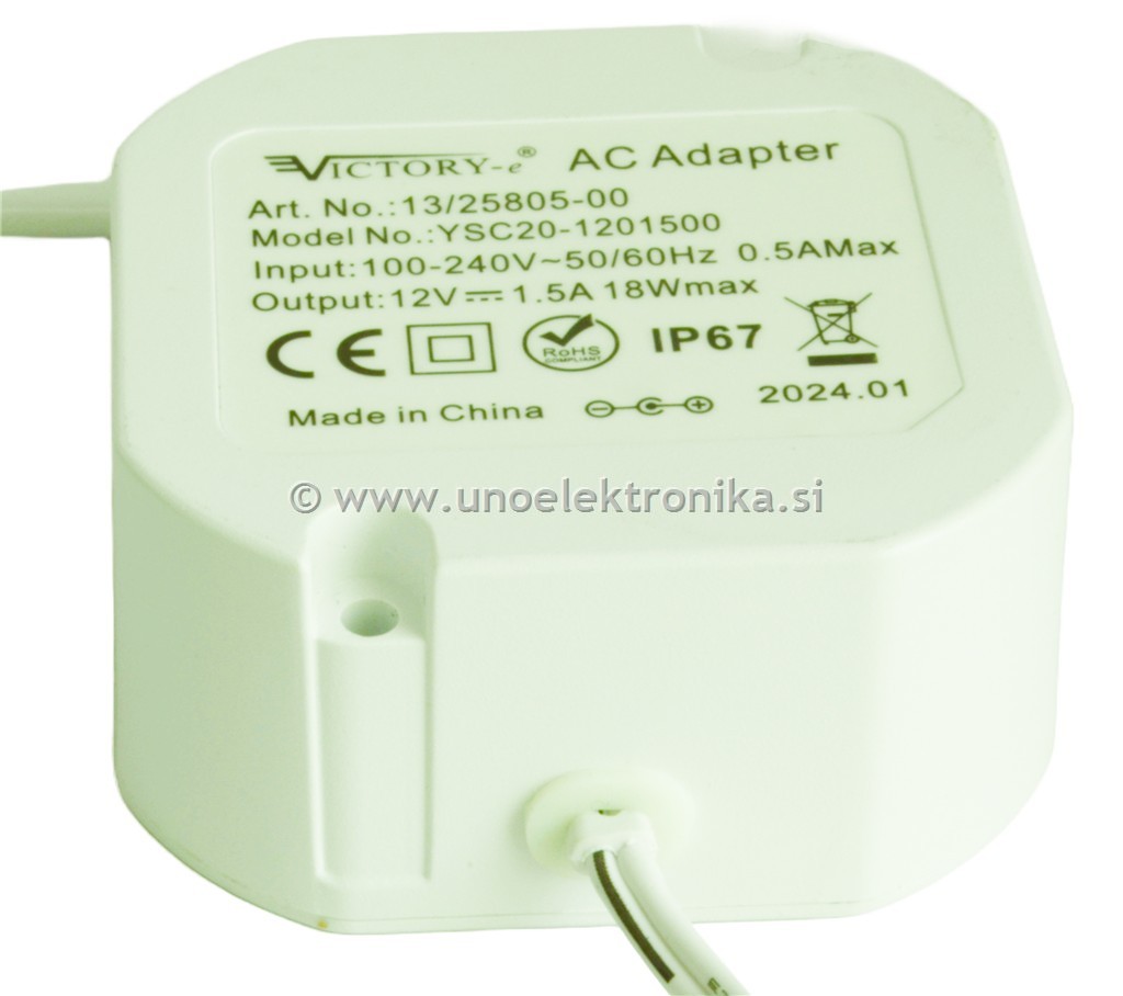 - dolžina kablov: omrežno napajanje 20 cm, izhod 100 cm